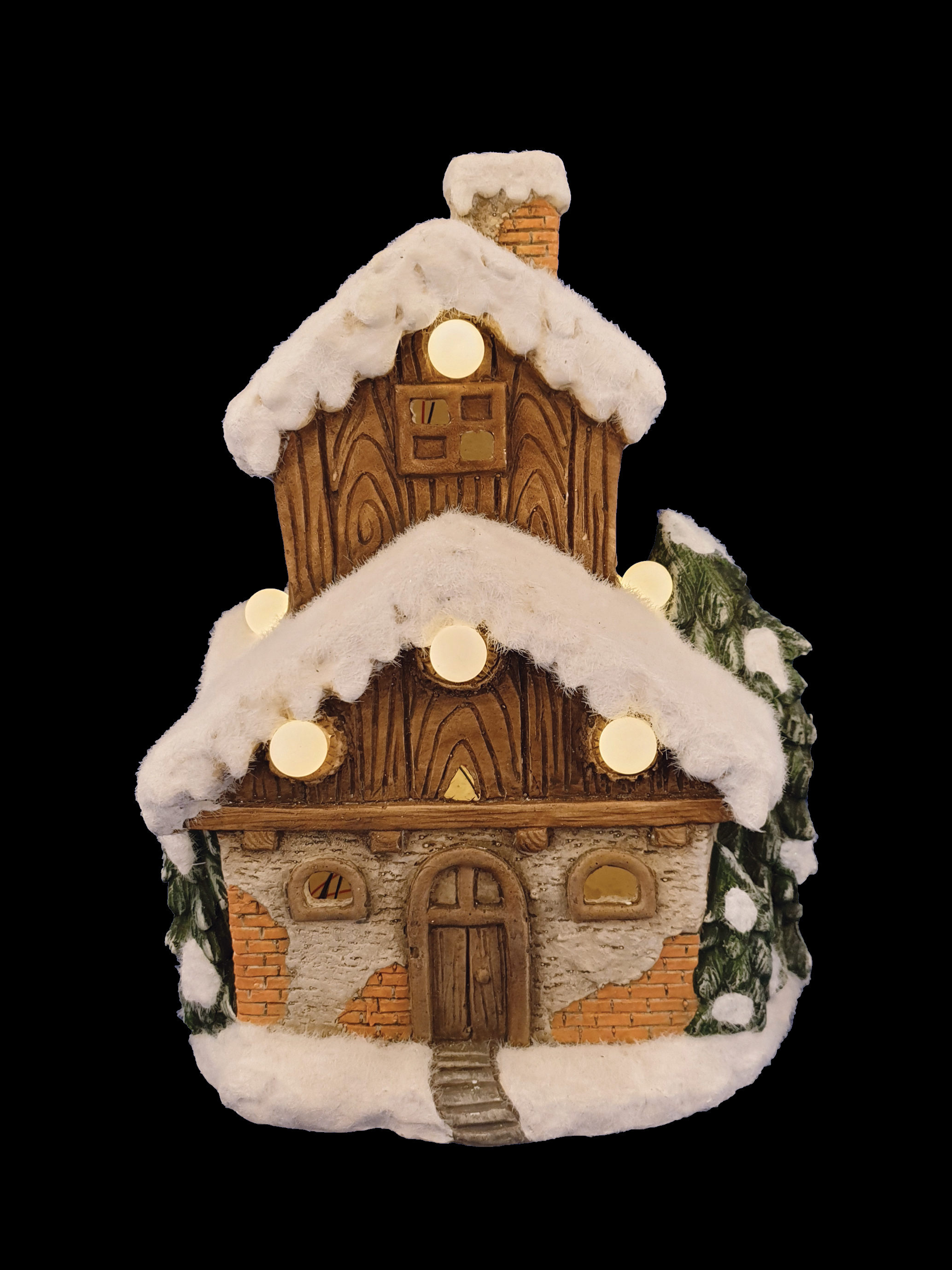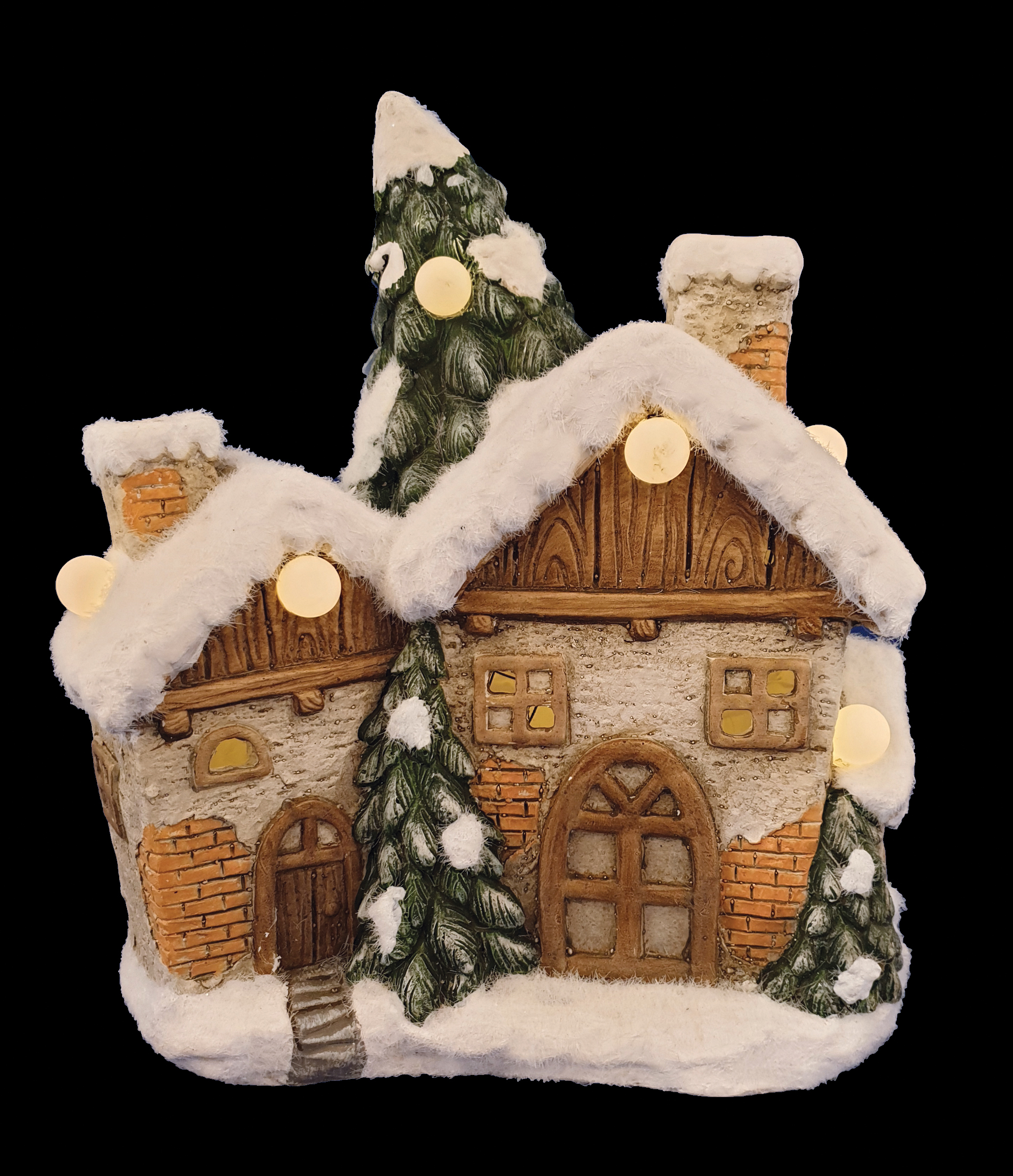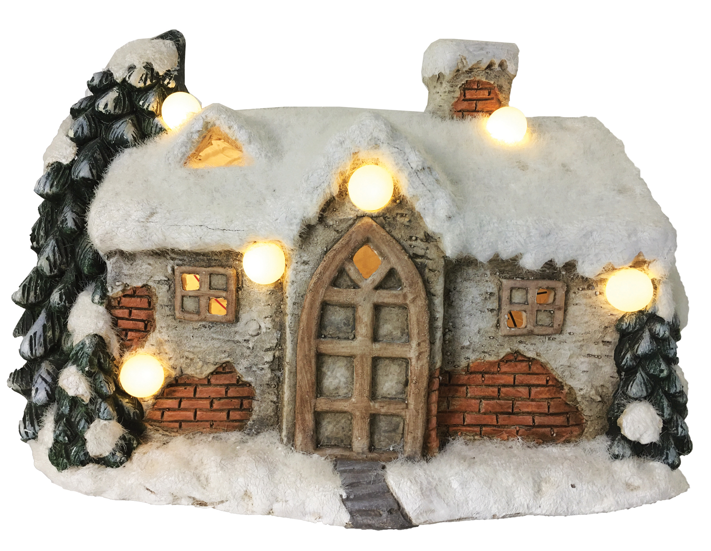 View CH358 Ceramic Brick Snow House w/Lights 4/Ctn